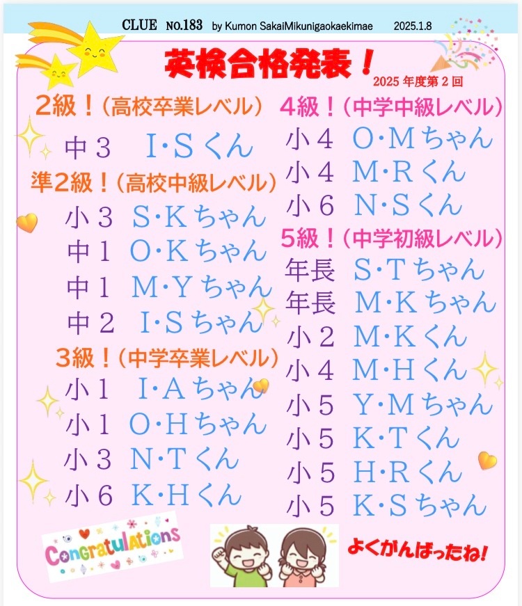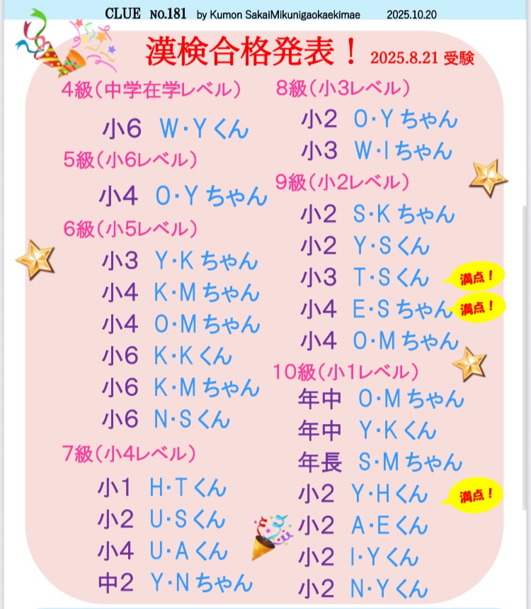 毎回小さい子から大きい子までたくさんの合格者を出しています!